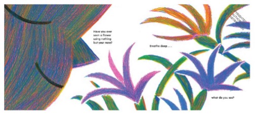Have You Ever Seen a Flower? (2021), written and illustrated by Shawn Harris, follows a child who leaves the gray city and travels into the countryside, where a vast meadow of colourful flowers awaits. Accompanied by a dog, the child explores the field, discovering a single flower up close. As they observe it, they begin to notice its colors, shapes, and textures, and experience it through all their senses - seeing, touching, smelling, and listening to the world around it. The story moves through the child’s gradual exploration of the meadow, showing the small details of plants, insects, and sunlight. Each page focuses on the sensory experience of being surrounded by flowers, following the child’s journey as they take in the richness and life of the natural landscape.