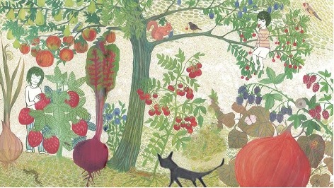 Il giardino dei sogni (2020) is a silent book (no words) by Maike Neuendorff in which two young siblings, accompanied by a curious black cat, explore a lush, dreamlike garden that appears only at night. Every night, through a small door in their home or by closing their eyes, they cross a threshold into a secret garden full of ancient trees, vibrant flowers, giant waterlilies, colorful birds, and other hidden creatures. The garden is magical, with rich foliage, unusual forms, and a sense of enchantment that blurs the line between reality and imagination. The siblings wander, discover, and marvel at every corner of this natural world, where time seems both expansive and gentle. Each page unfolds a new scene filled with detailed, colourful illustrations of the garden and its wonders.