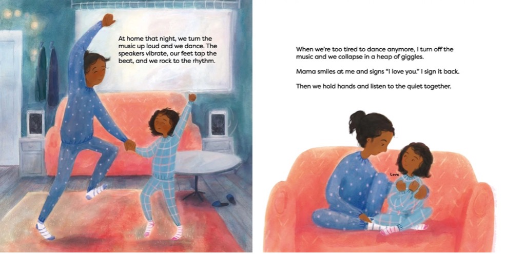 Listening to the Quiet (2023), written by Cassie Silva and illustrated by Frances Ives, follows Jacki, a young girl whose mother is gradually losing her hearing due to a rare condition. As her mother's world becomes quieter, Jacki's remains full of sound, especially during Music Appreciation Fridays at school. Determined to share her love of music with her mother, Jacki learns sign language and finds ways to include her in the experience. The story explores their journey of adapting to change, fostering communication, and embracing new ways to connect. Inspired by the author's own childhood, this story highlights the importance of understanding and supporting loved ones through life's challenges.