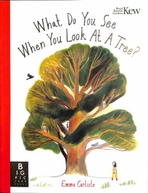 What Do You See When You Look at a Tree? (2023), written and illustrated by Emma Carlisle, is a picturebook that takes readers on a journey of observation and discovery, exploring trees from multiple perspectives. The story follows a narrator who looks closely at different trees, noticing their shapes, colours, textures, and the life that surrounds them. Through a series of questions, the book invites readers to imagine what each tree has seen and experienced over time. Birds, insects, and other creatures interact with the trees, and seasonal changes subtly appear as the story progresses. The narrative focuses entirely on exploring the tree’s physical presence, its environment, and the small details that make each tree unique, guiding readers through a mindful and detailed look at nature.